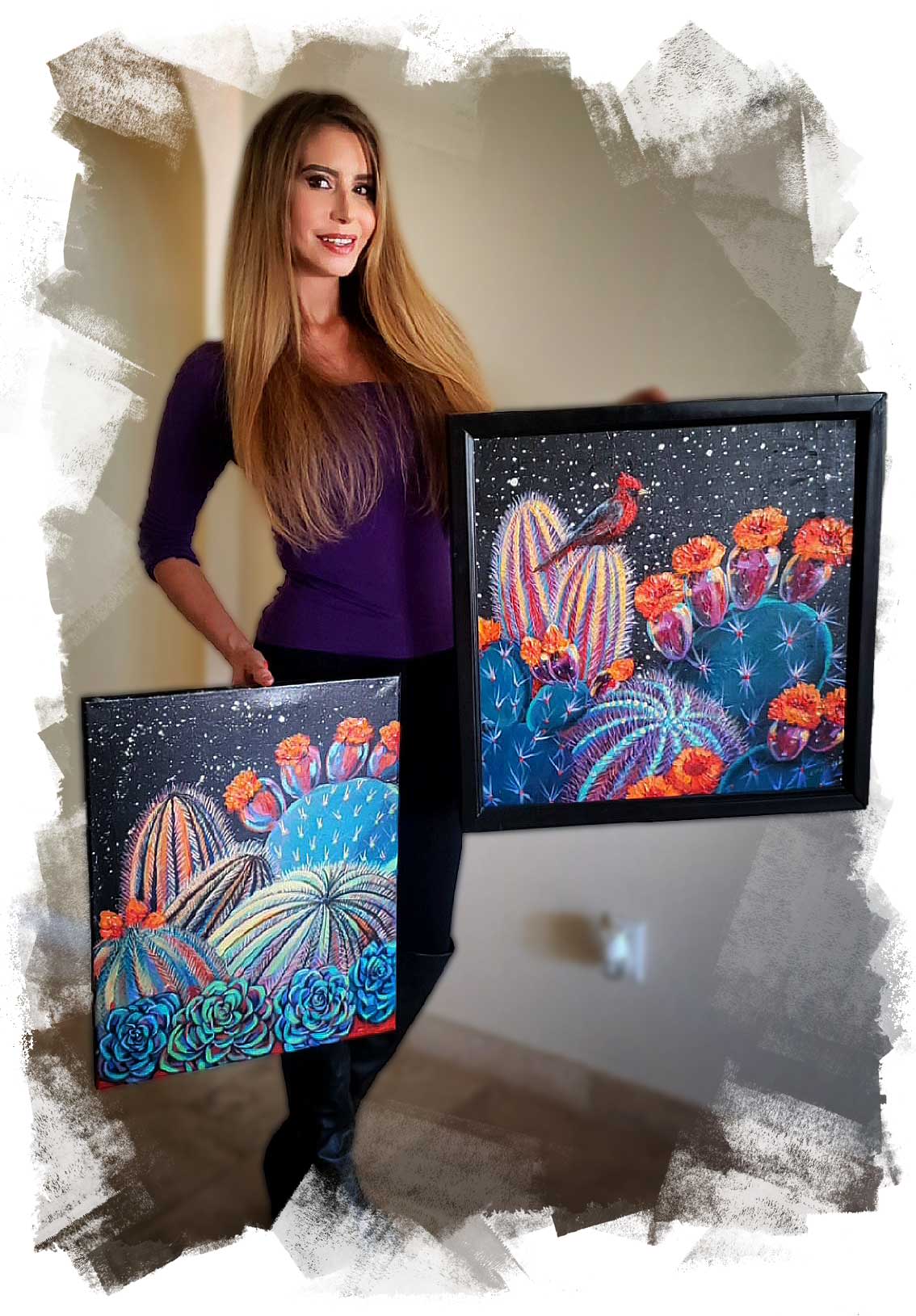 Laura (Thurbon) Ortega is a world of creativity contained within a single, unstoppable artist. Born and raised in Lima, Peru, Laura grew up as the granddaughter of a distinguished admiral in the Peruvian Navy, affording her an early exposure to diverse cultures, countries, and communities. This vibrant cultural foundation, along with her intense eight-year study at the prestigious National Fine Arts School of Lima, shaped her into a multifaceted artist and educator. Graduating as both a professional artist and art teacher, Laura has traveled an inspiring journey across continents, with her works now gracing collections in the United States, South America, Europe, Israel, and India.